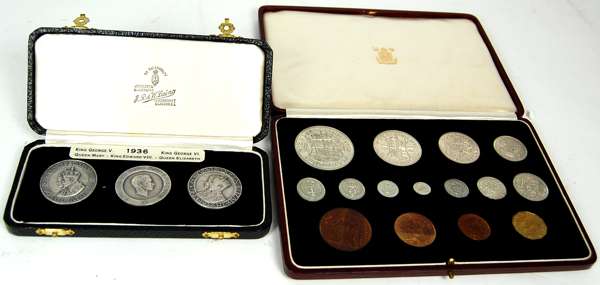 from crown down, in original Royal mint case of issue; together with a three medallion set of uniface silver medallions for George V (1935 Jubilee), Edward VIII (coronation) and George VI (coronation), in case of issue