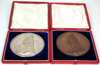 in virtually UNC with only very minor surface marks, obverse portrait and reverse Victoria on throne, in original tooled red leather case; together with cased bronze example (2)