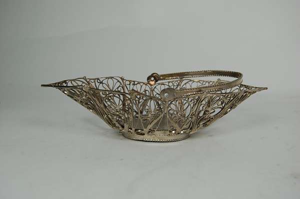 to include a collection of Continental silver flatware; pierced cruet set comprising, peppers open salts and mustard; and various plated wares including a butlers tray and filigree basket etc (qty)