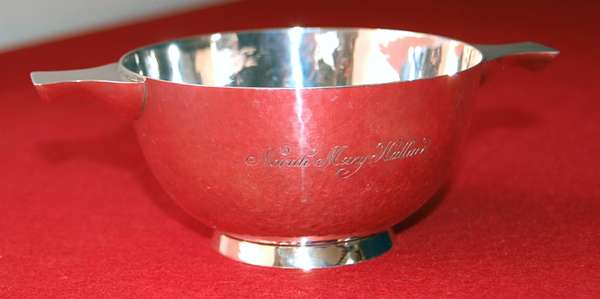 of typical form with engine decoration, also to include a presentation quaich and porringer, various coffee spoons, part enamelled dressing table set and table coasters etc (qty)
