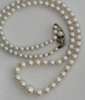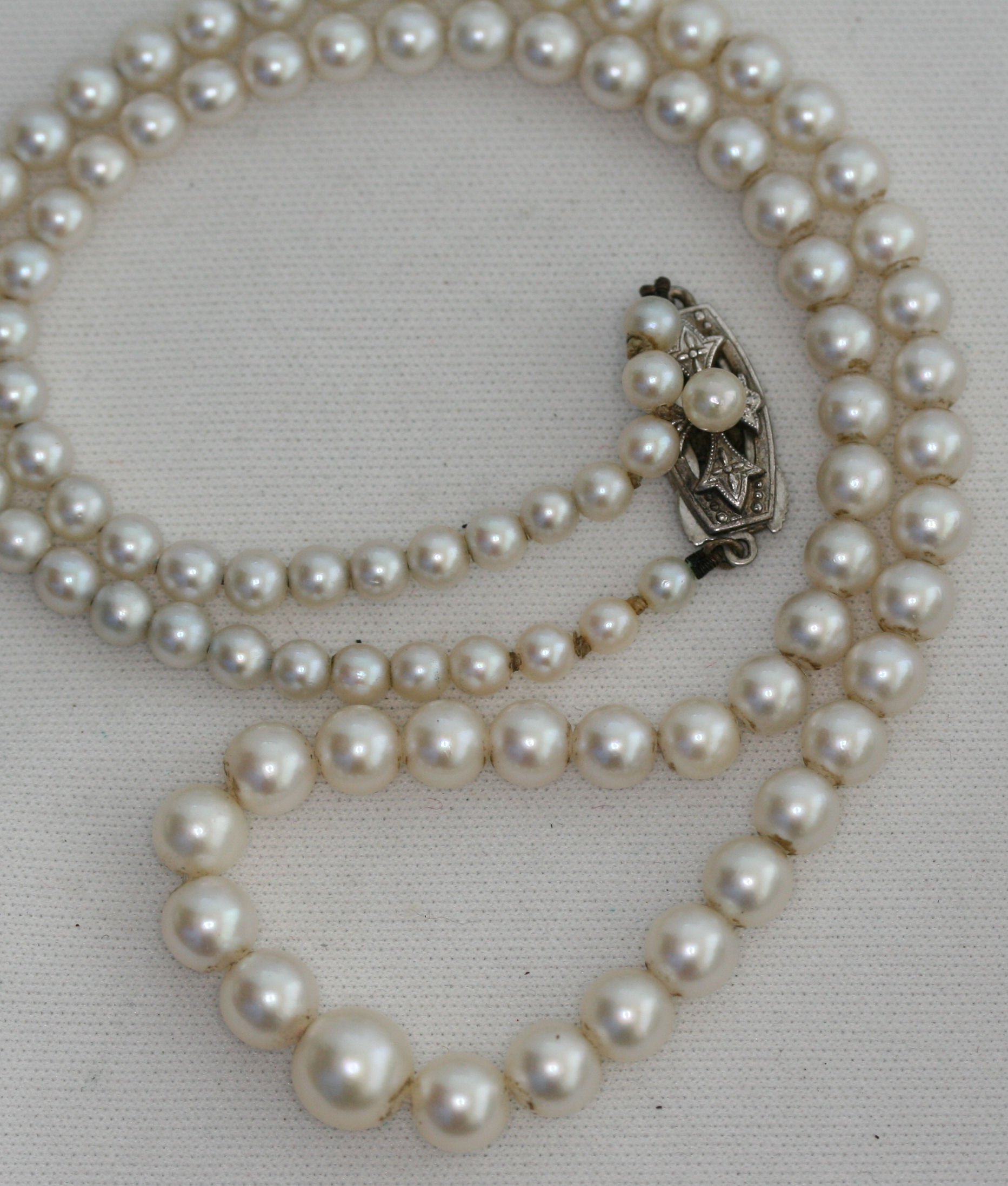 with nine angled circular cut diamonds and two groups of three circular cut emeralds together with a graduated culture pearl necklace and a cased paste zircon and diamond pendant necklace in a fitted Edwardian case