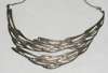 set in white and yellow 9ct gold, with central collet set amethyst flanks by row of three brilliant cut diamonds; together with a modern silver necklace, formed as a flock of swifts in flight, on simple trace link chain (2)