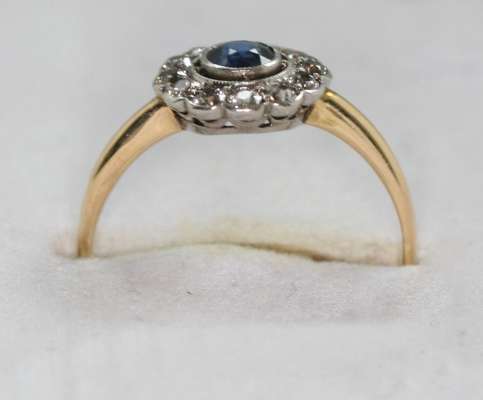 A sapphire and diamond floral cluster ring