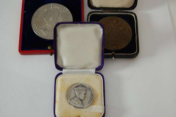 to include various silver British coins, a USA 1921 Morgan dollar, Canadian 1953 dollar; together with various cased medallions (qty)