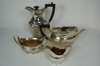London 1908 and 1909, comprising teapot, water pot, twin handled sugar bowl, milk jug, the tapered bodies with fluted lower sections and angular handles (4)