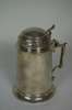 possibly Elkington & Co, Birmingham 1867, the flared cylindrical form with stepped base engraved with acanthus border, domed hinged cover and angular S scroll handle