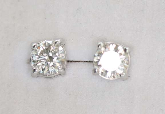 A pair of 18ct white gold mounted diamond ear studs