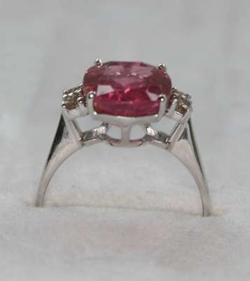 Estimated weights: pink tourmaline 4.46cts; diamonds approximately 0.24cts total