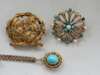 Brooches 4cm and 3.5cm, pendant 2.5cm (including bale), chain 41cm