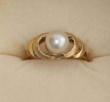 the circular cut sapphire with a border of eight circular cut diamonds, together with an attractive double sapphire and diamond cluster ring, the two circular cut sapphires with a scrolling border of circular cut diamonds; and a small pearl set dress ring