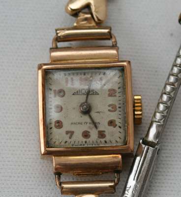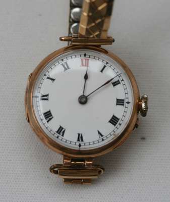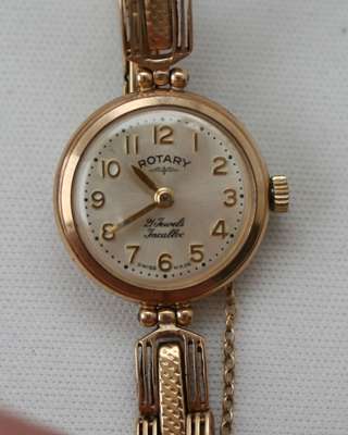 Rotary 9ct gold with sprung bracelet; Mikosa with 18k case, gilt bracelet; a 1920's watch 9ct gold case and sprung bracelet; another with gilt bracelet (4)