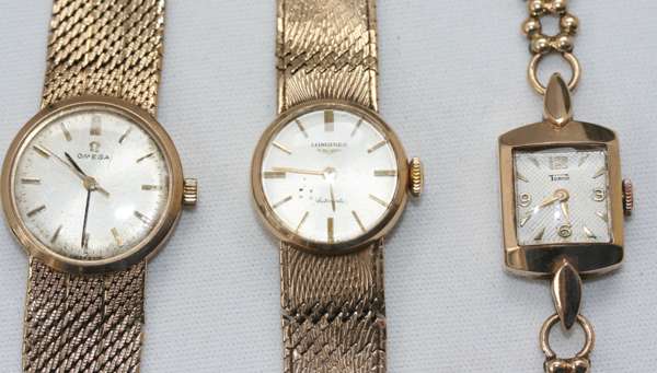 with circular dial with baton numerals, on mesh link bracelet; together with a ladies Longines wristwatch with small circular diam an texture mesh bracelet and a Tudor ladies wristwatch with square dial and open link bracelet (3)
