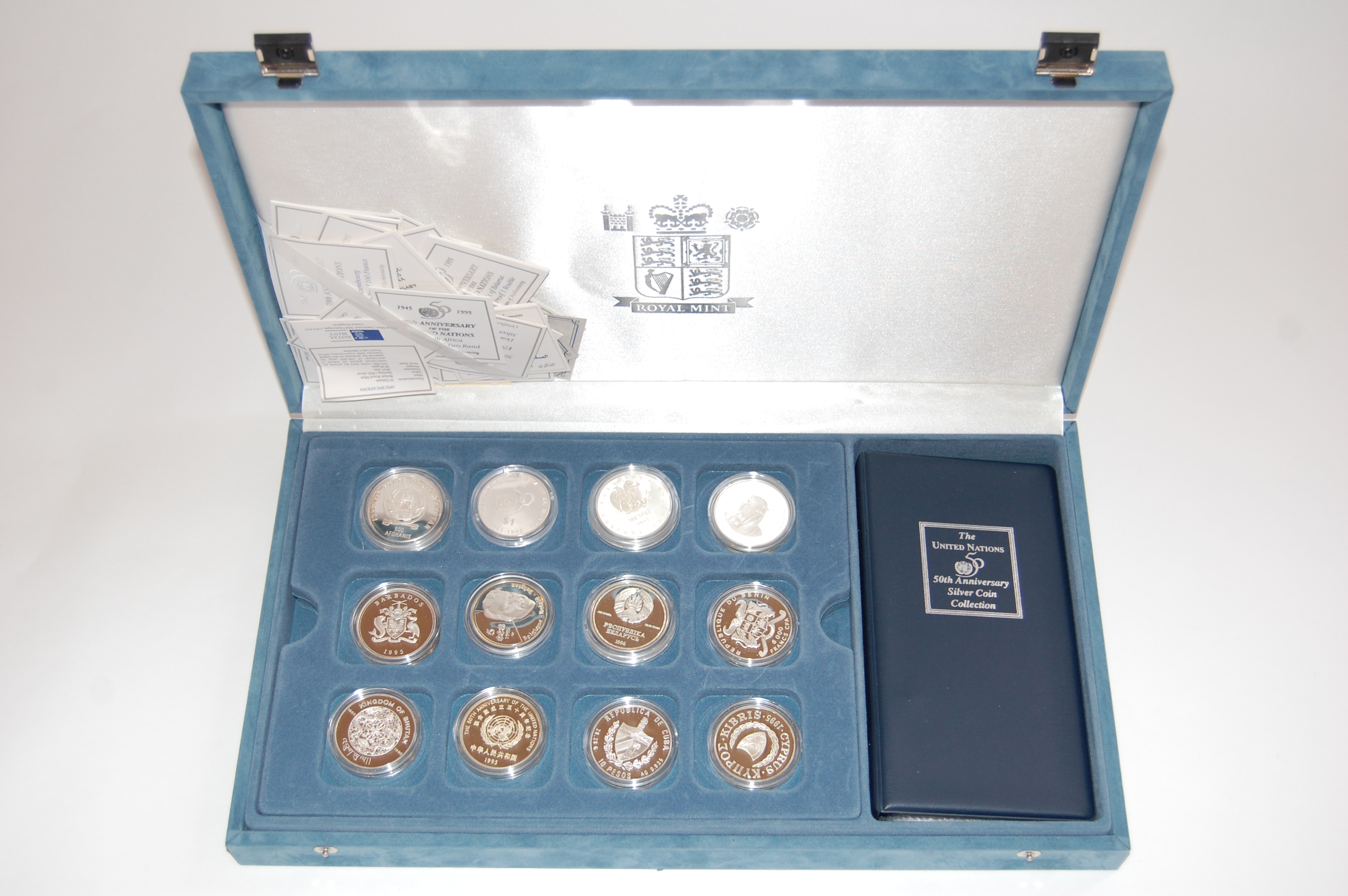 comprising thirty six crown sized and smaller silver proof coins, in original case of issue.