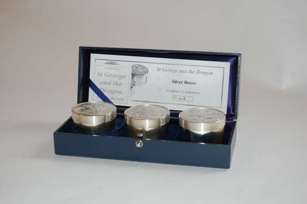 by Christopher Lawrence, for the Royal Mint, number 418/500, each with a pull of cover featuring St George and the Dragon, in original case