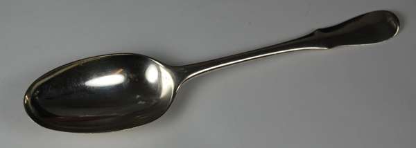 Alexander Cameron, marked CAM/ERON, C, Thistle, pot of lilies, DUN/DEE, of Fiddle pattern with engraved script D; a jam spoon by the same marker of Fiddle pattern; an Aberdeen toddy ladle, Emslie & Mollison, marked E&M, A, B, D; an Edinburgh sifter ladle, William Dempster, maker's mark only, with finely pierced bowl and engraved crest; and a converted Hanoverian pattern tablespoon, marks rubbed (5)