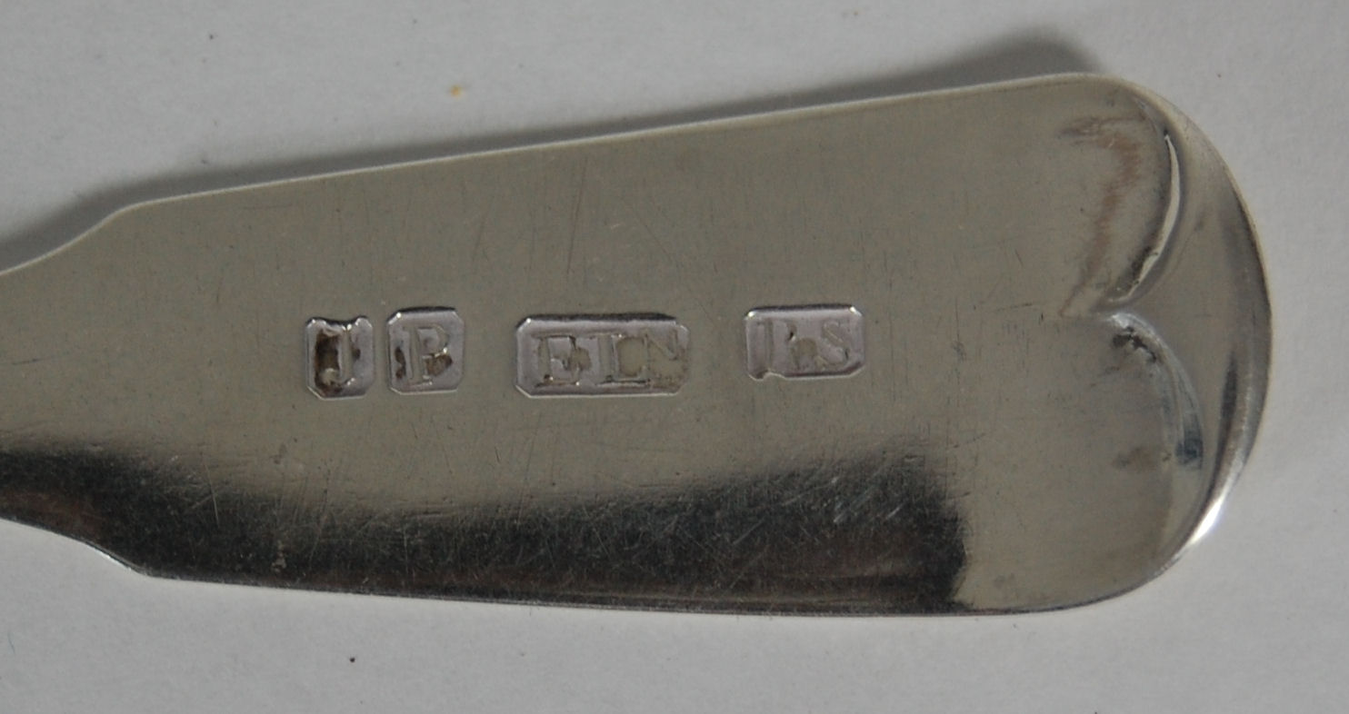 J Pozzi & R Stewart, marked J,P, ELn, RS, of Fiddle pattern with engraved initial S to terminal