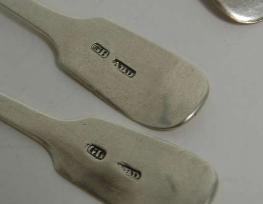 Robert Keay, marked RK, Edinburgh 1807, of old English pattern with script initials GM to terminal (6)