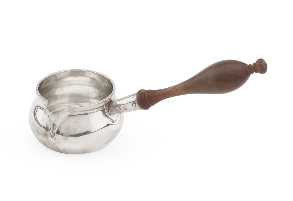 SH or HS, London 1810 the simple bellied body with sparrow beak spout and socket set turned wooden handle