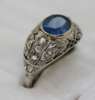A French early 20th century platinum mounted sapphire and diamond set ring