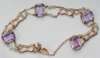 the central panel set three graduated opals, pearls to each side with small ruby, curb link bracelet, sprung clasp, with safety chain, together with an amethyst and pearl bracelet, set four amethysts in a rub over setting joined by chain links with pearls, box clasp, safety chain