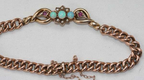 A Victorian gold, pearl, opal bracelet