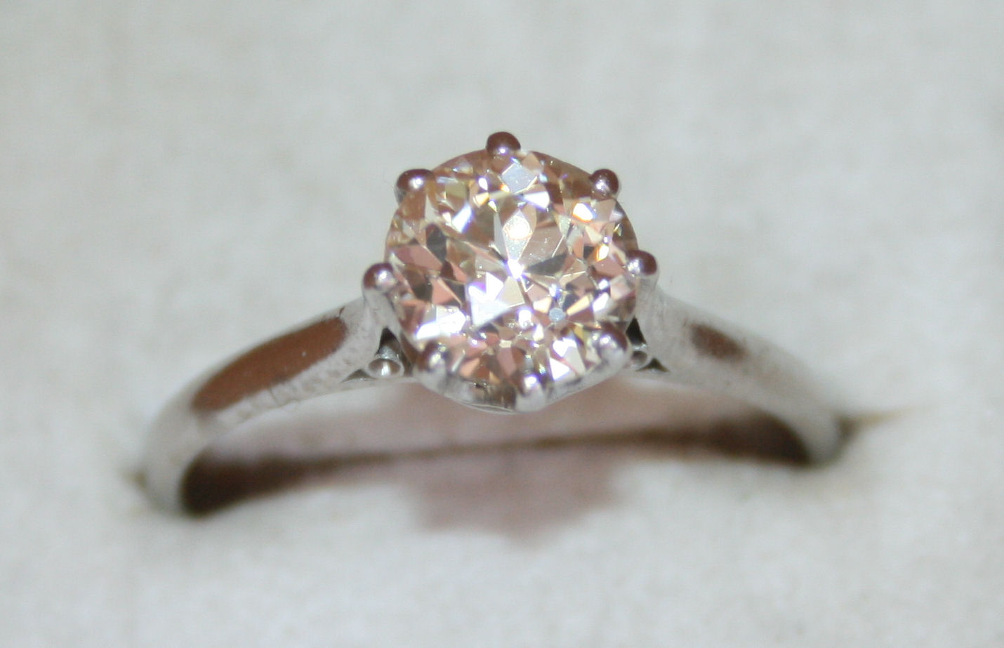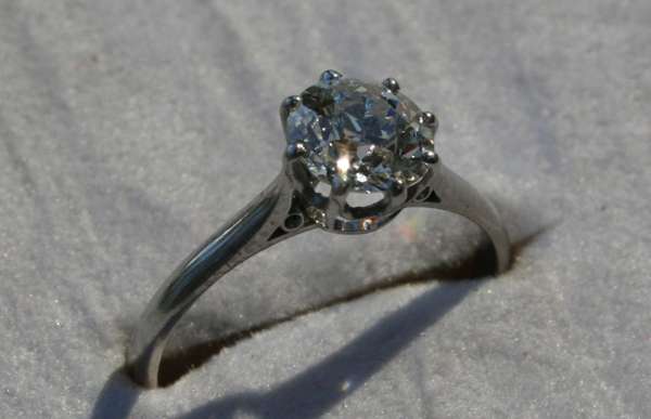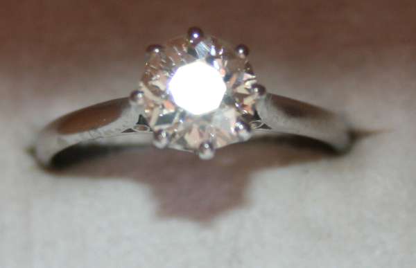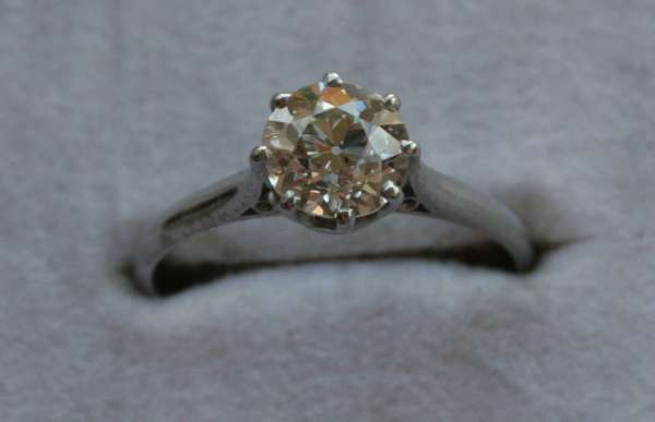 the circular brilliant cut diamond claw set and in white metal, pierced gallery