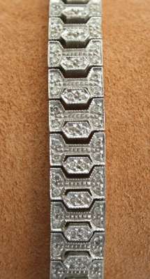 the articulated bracelet, pave set with diamonds to the outer edge and diamond set lozenges to the centre