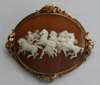 the oval cameo of winged horse women and galloping horses, ribbon tied gold frame