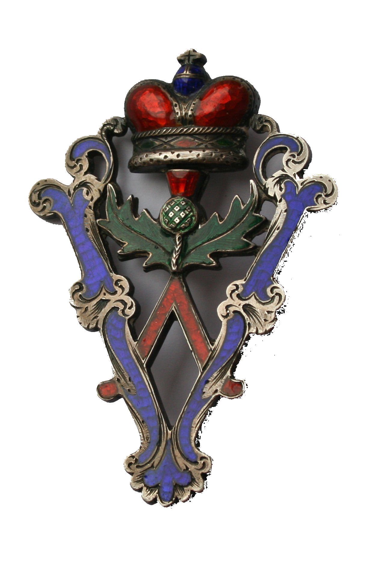 of open form with a central crown above a thistle and 'V' with upturned 'V' to the centre