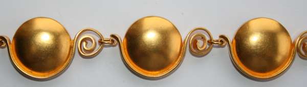 GT, London 1997, composed of nine circular satin gilt domed bosses joined by coiled links, simple hook clasp