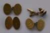 engraved crest and motto to one face, chain links and monogram to the other face, with a single 18ct gold cuff link and a tie tack