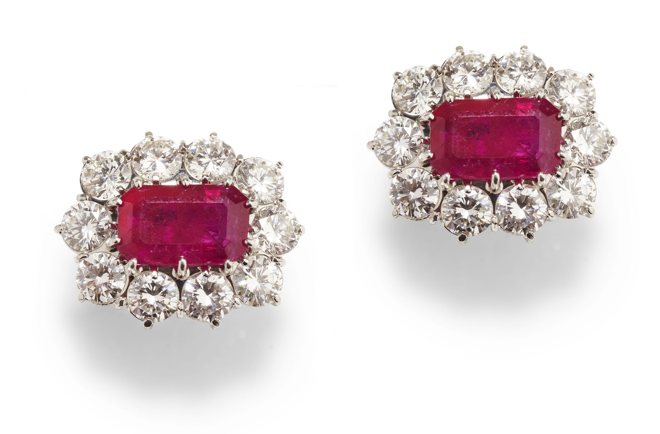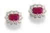 A pair of ruby and diamond cluster earrings