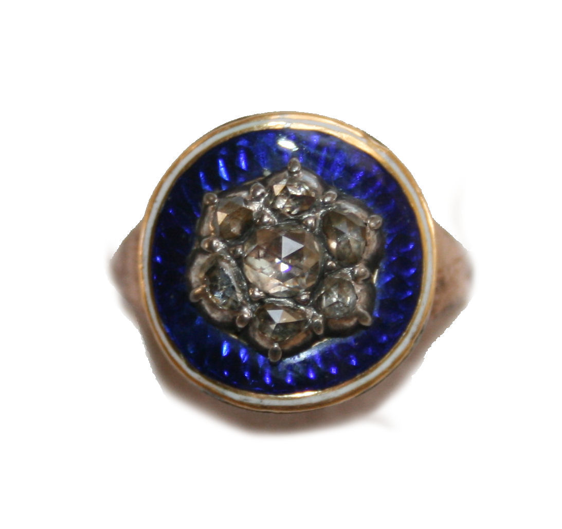 A George III gold enamel and diamond set ring