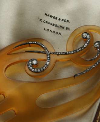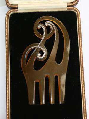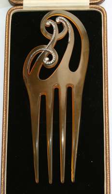 An Edwardian diamond set hair comb in blonde tortoiseshell