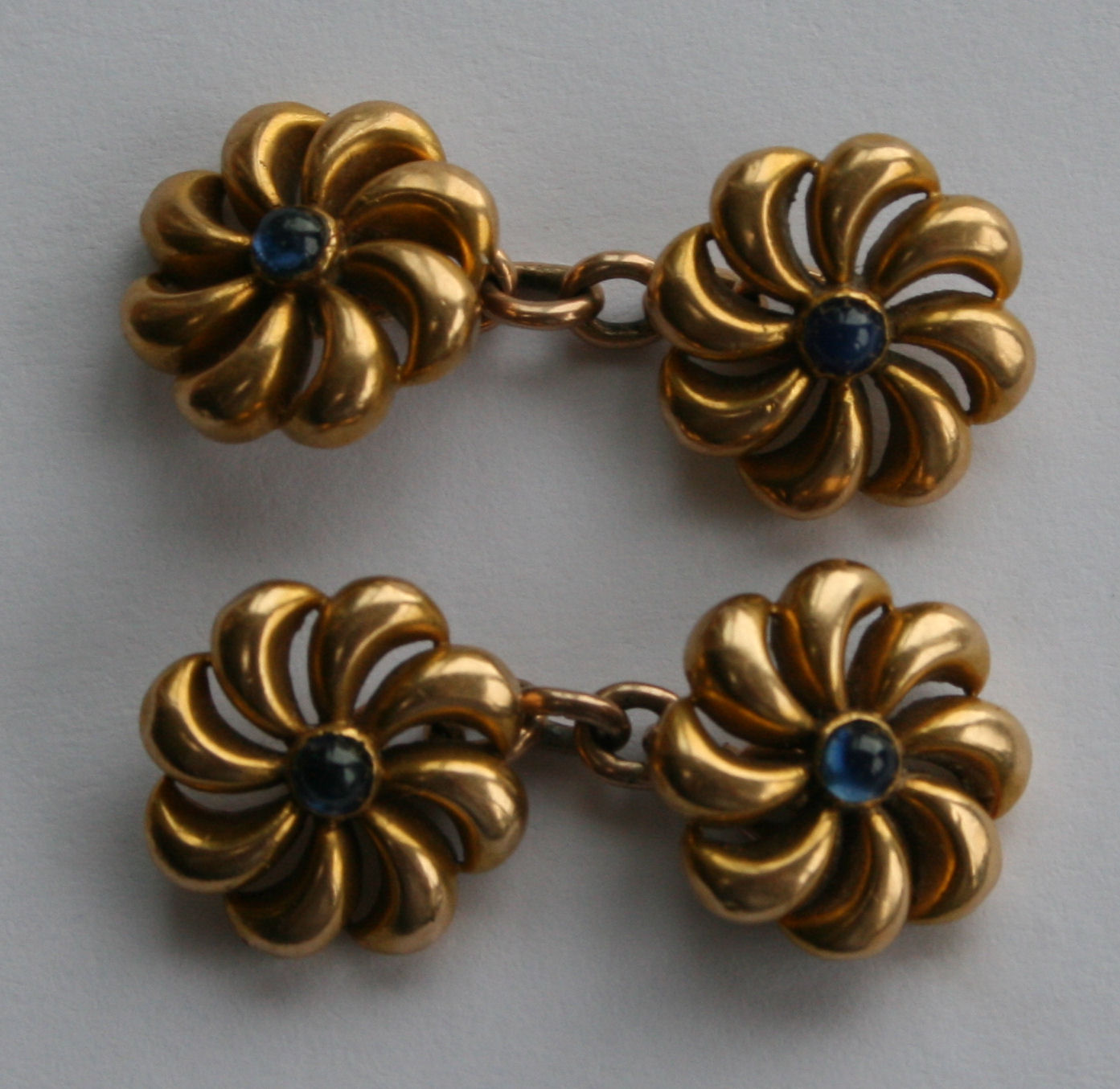 of whorl form set cabochon sapphire, chain links