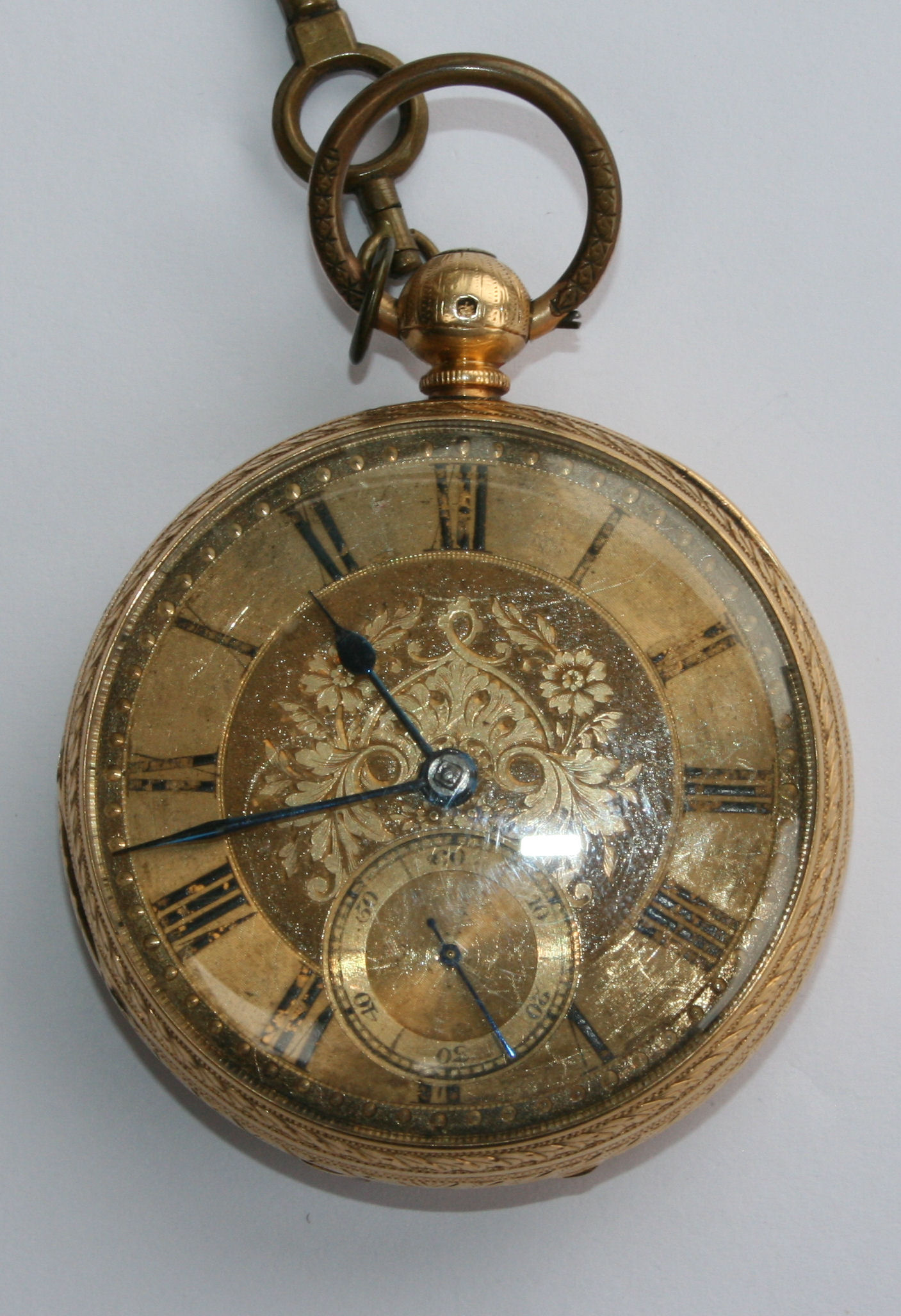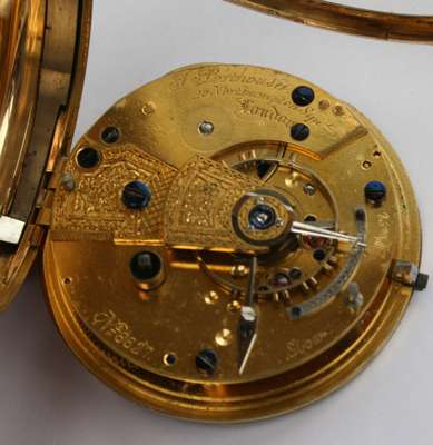 key wind, open faced, gilt dial, fusee movement inscribed J Porthouse London, engraved outer case
