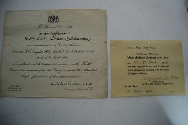 comprising QSA, Cape Colony, Paarderberg, Driefontein and Transvaal bars; KSA South Africa 1901 and 1902 bars; 1914 star with bar, War Medal, Victory medal with MID leaf, awarded to 6461 Regt Segt Major W Neilson; together with MID certificate and Killed in action certificate