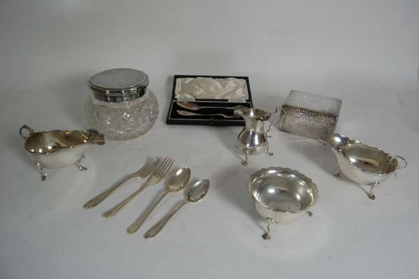 to include sauceboats, bon bon dished, sugar bowl and matching cream jug and various flatware (qty)