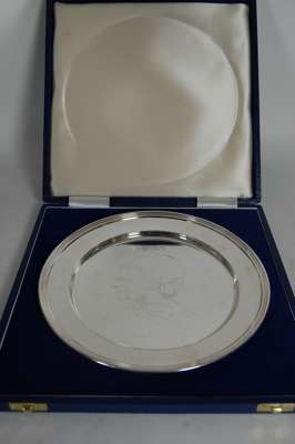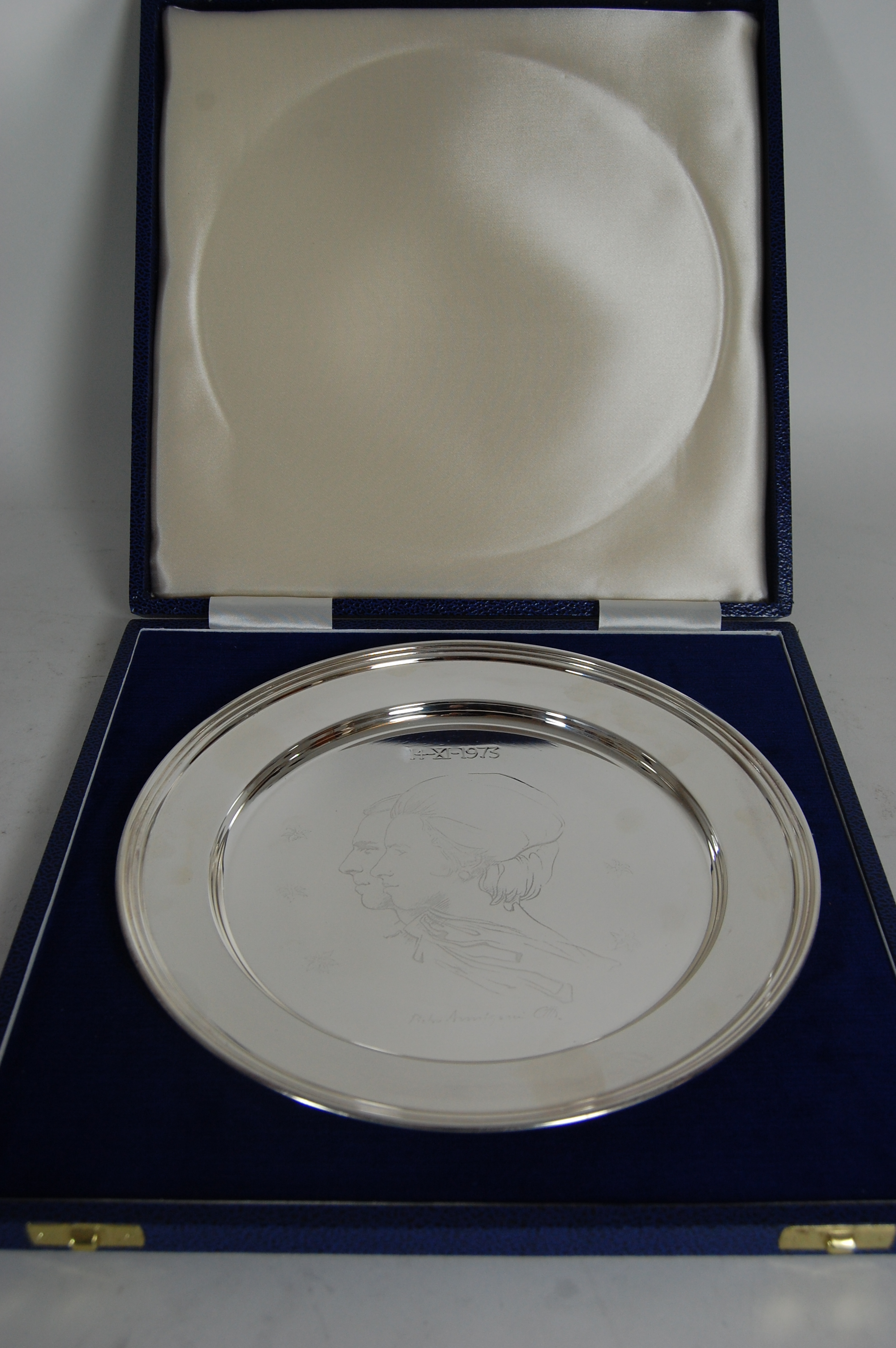 R&D London 1973, to commemorate the marriage of Princess Anne & Captain Mark Phillips, of simple form with engraved portraits and dates, in original box of issue