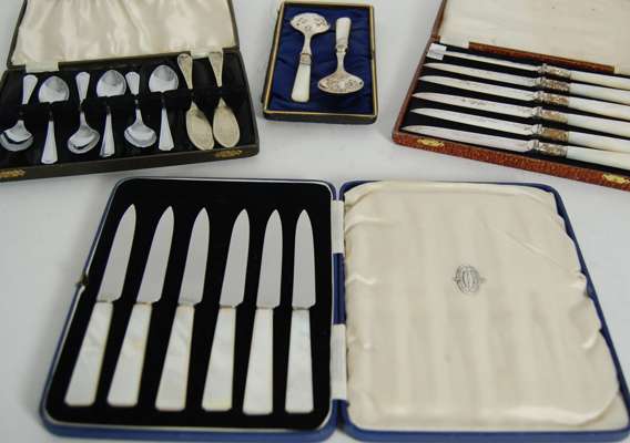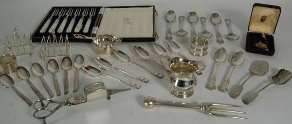 to include various cased sets of spoons; cruets, toast racks, napkin rings etc (qty)