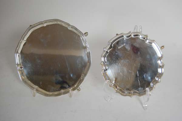 each of shaped circular outline with everted and reeded rims, raised on simple hoof feet (2)