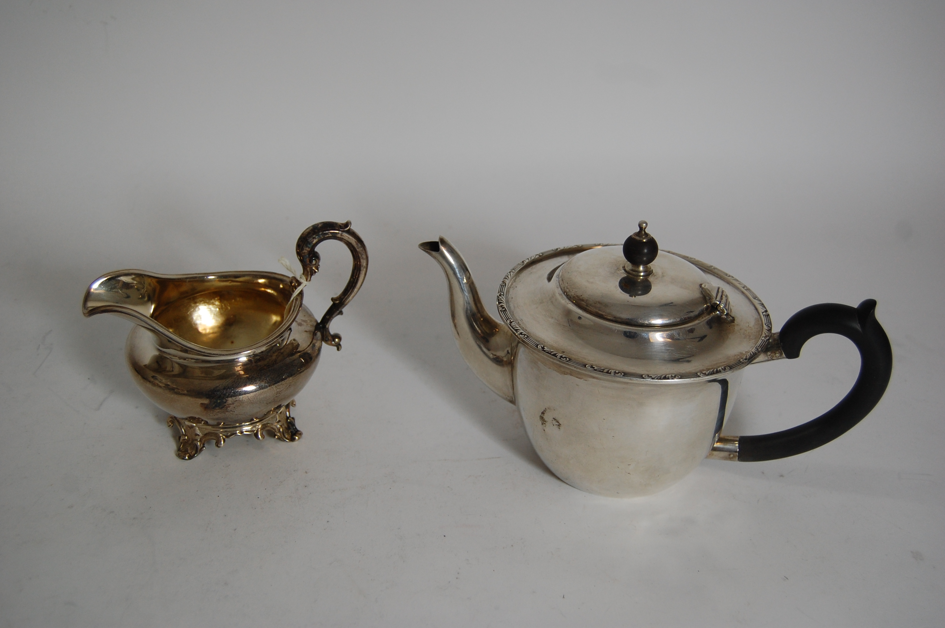 Brook & Sons, Edinburgh 1927, of simple tapered form with curved spout; together with a Victorian cream jug by the Barnards, of bellied form with cast bracket feet and wide pouring lip (2)