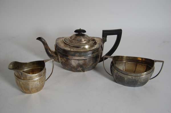 Birmingham 1931, comprising teapot, milk jug and twin handled sugar bowl of simple tapered form with angular handles (3)