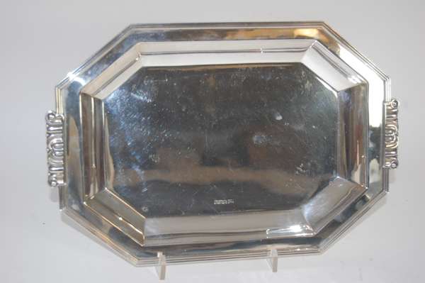 Walker & Hall, Sheffield 1939, of octagonal form with reeded border and twin art deco handles