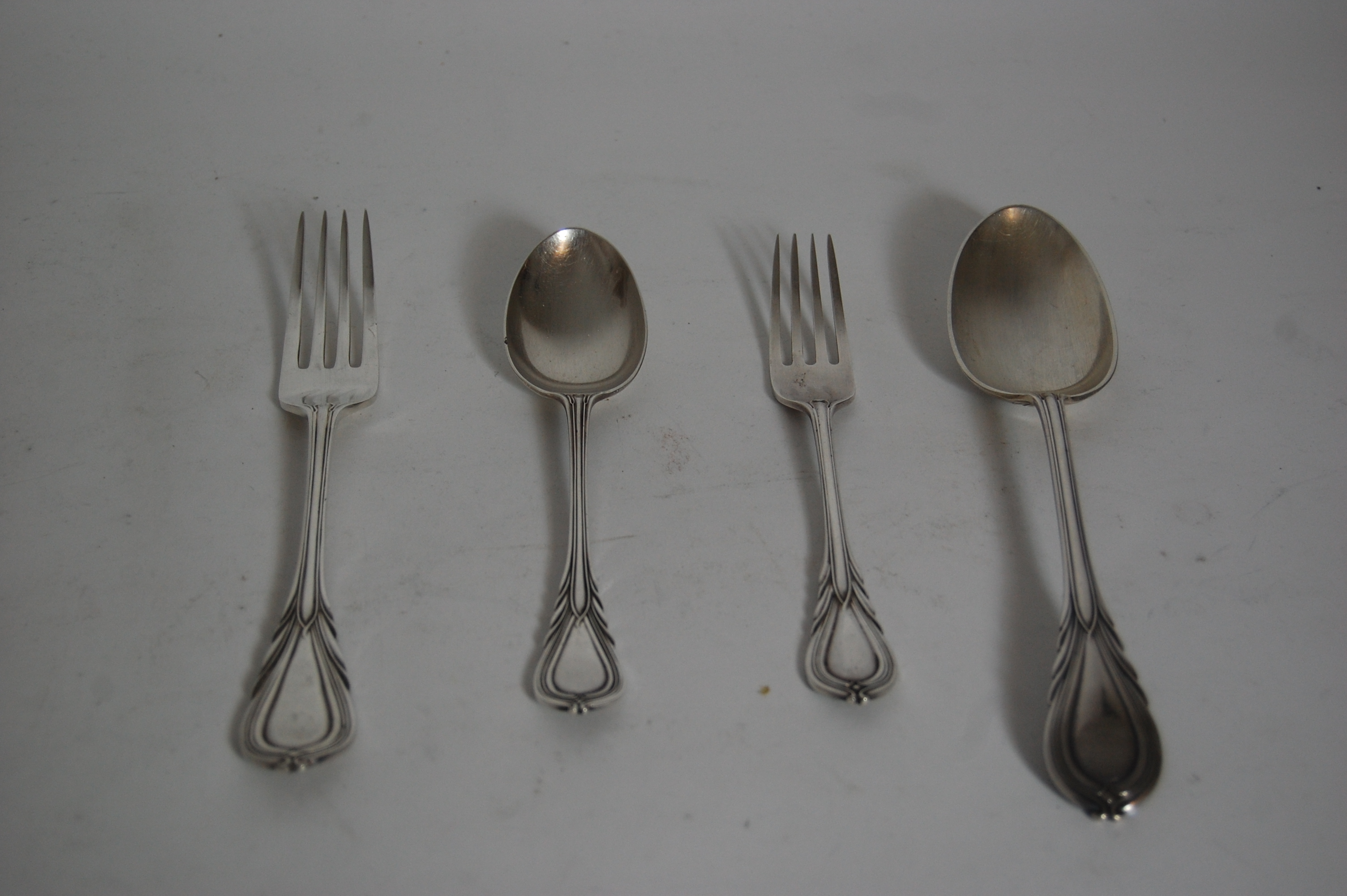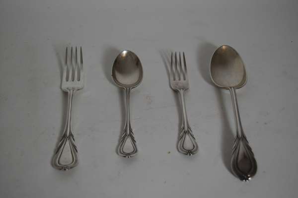 various dates, comprising six tableforks, dessert forks, tablespoons and dessert spoons, each of double struck hourglass variant with foliate details (24)
