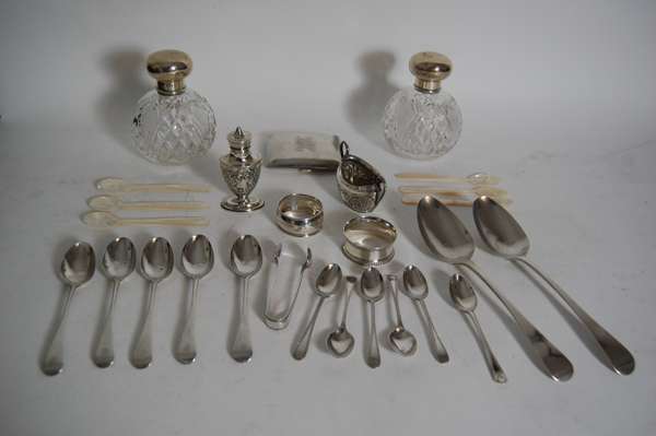 to include various mounted glass jars, flatware, napkin rings, cigarette case etc (qty)