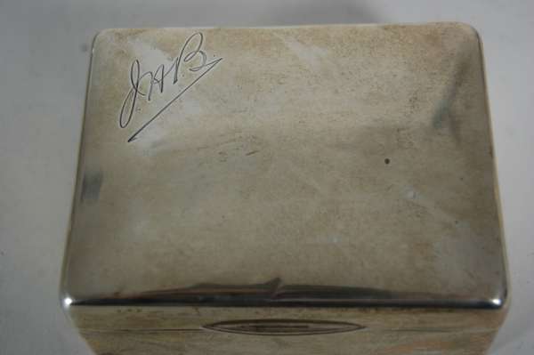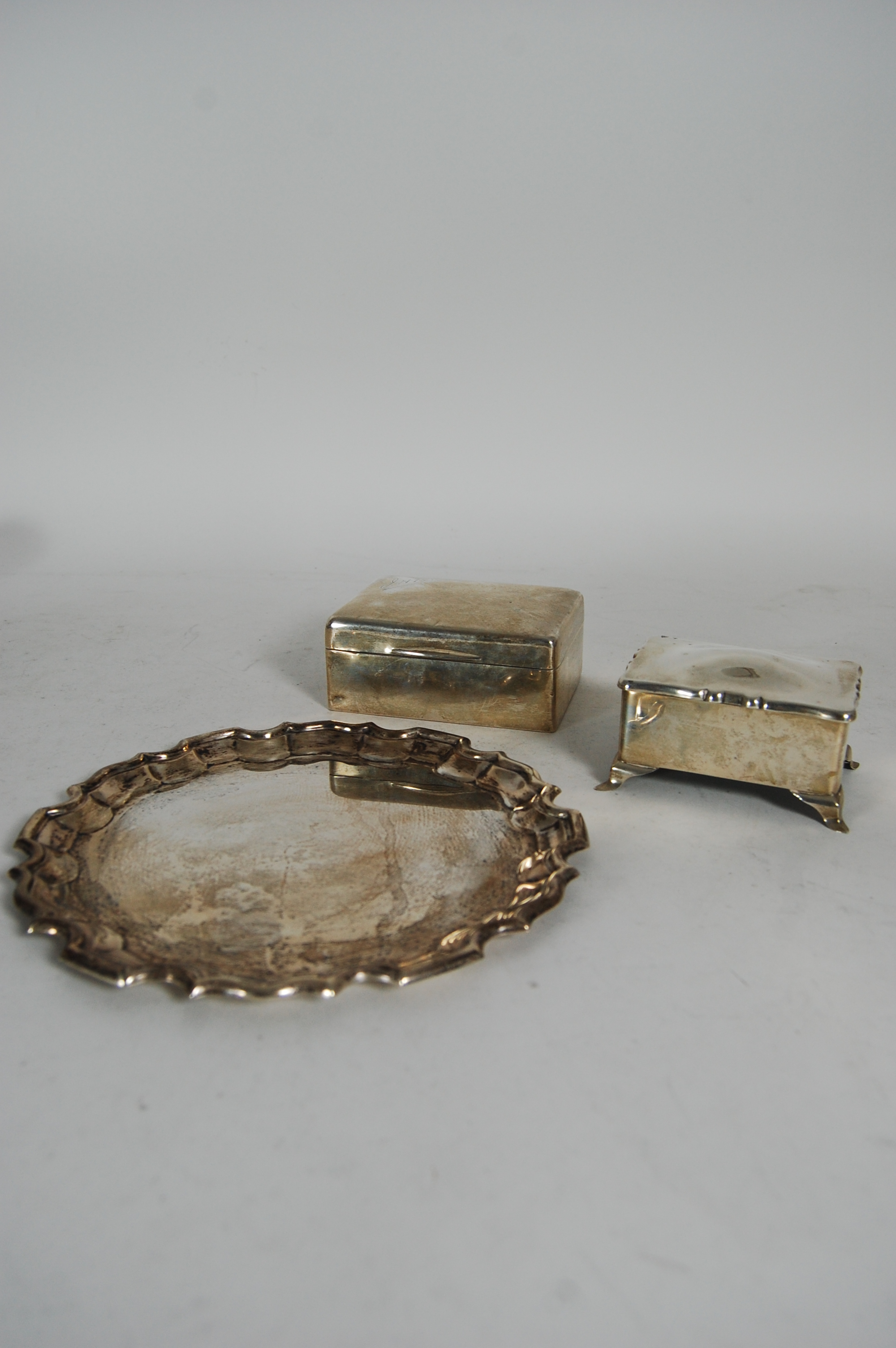Birmingham 1937, of scalloped outline with raised border; together with a small table cigarette box with engraved signature to cover and a jewellery box (3)