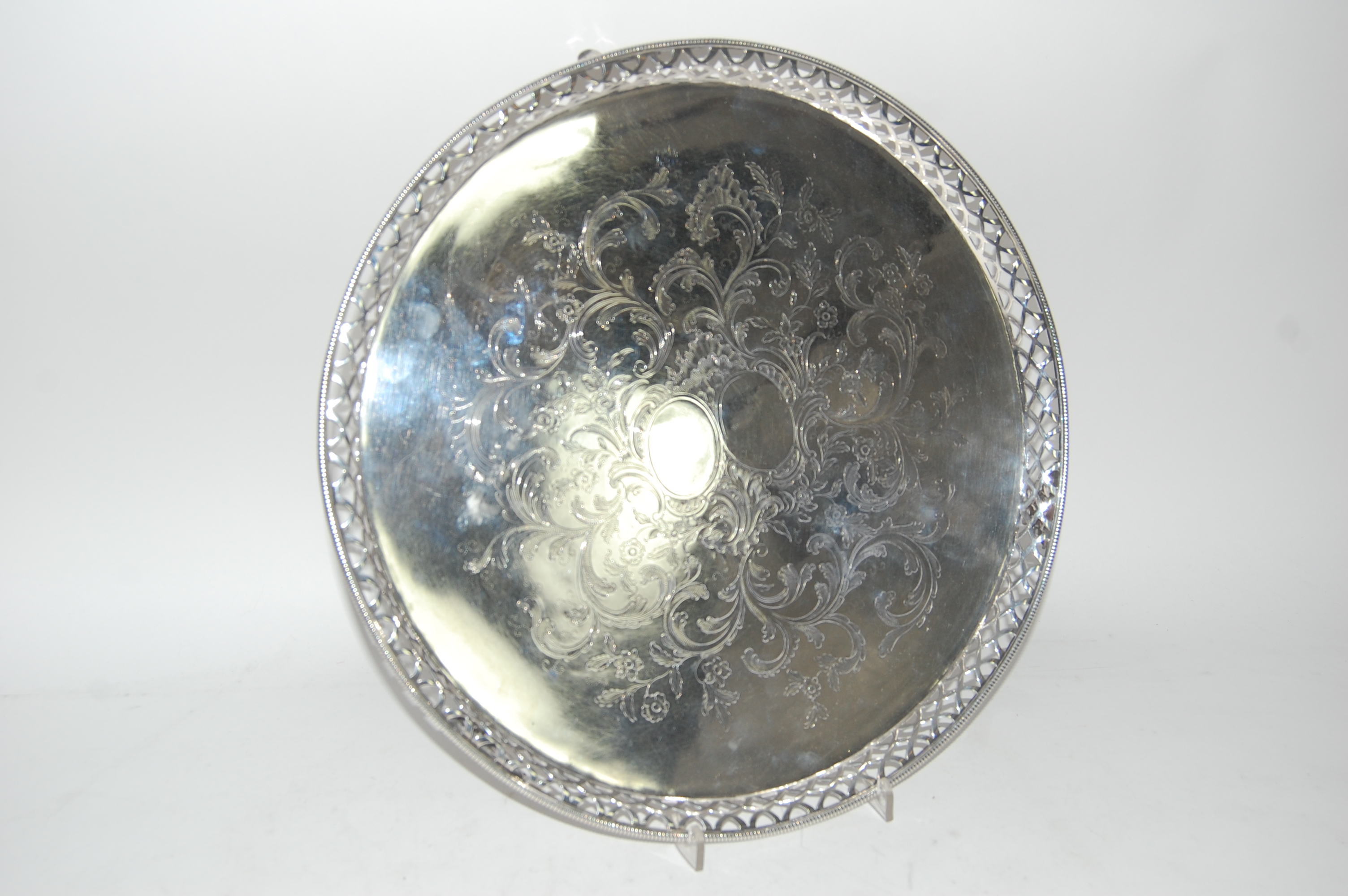 Sheffield 1906, of lobed circular outline with clasp ribboned border, the centre engraved with crest to centre, raised three bracket feet