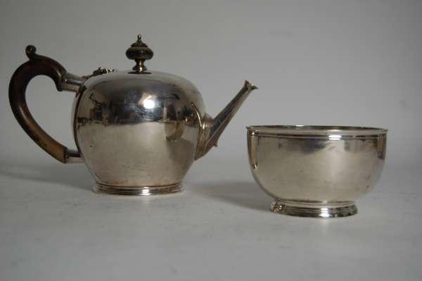A modern bachelors teapot an sugar bowl