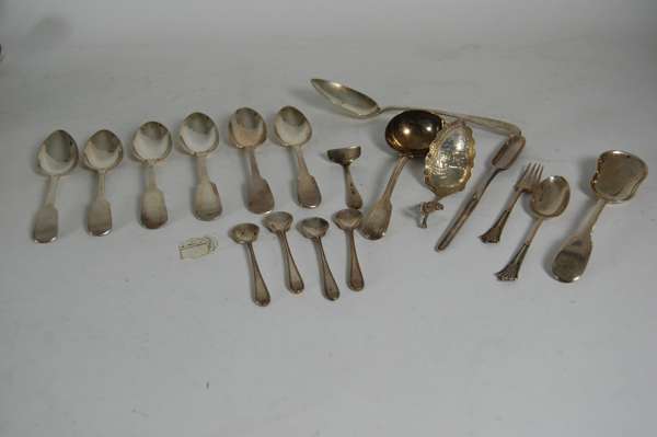 to include a George III ice cream shovel; a marrow scoop and various small flatware etc (qty)
